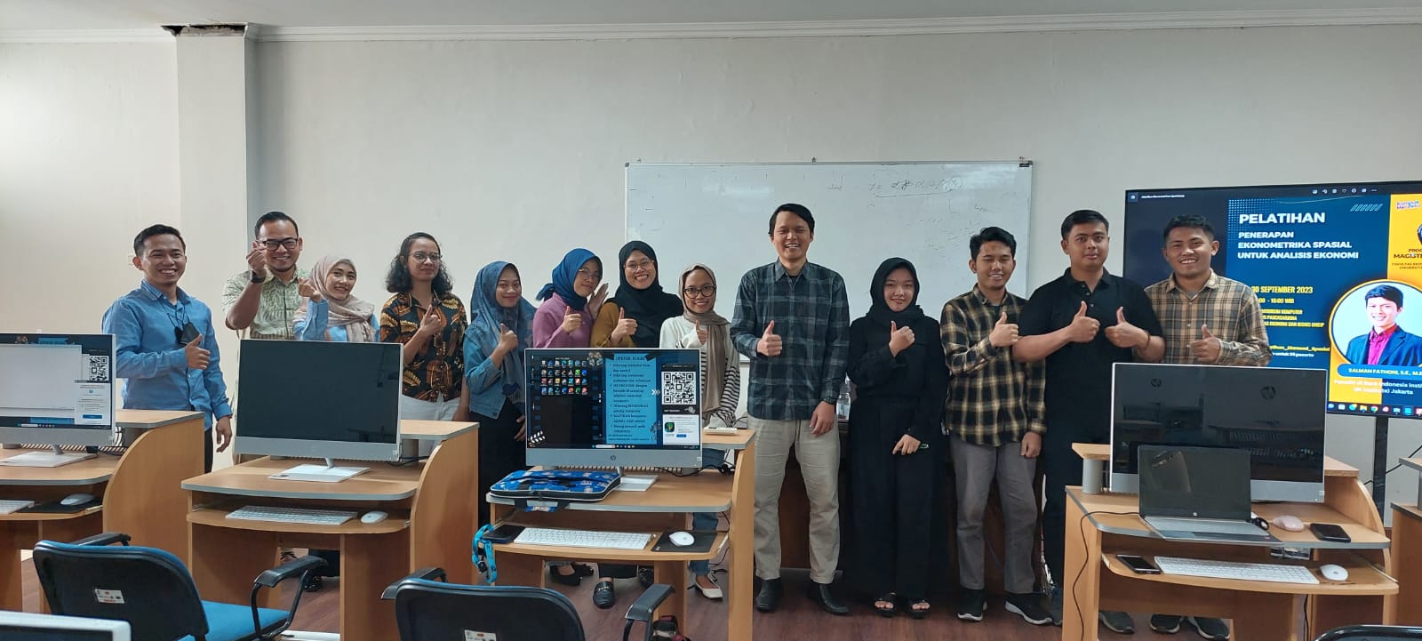 Program Magister Ekonomi menyelenggarakan Pelatihan Penerapan Ekonometrika Spasial Untuk Analisis Ekonomi pada tanggal 30 September 2023 bertempat di Laboratorium Komputer Kampus Terpadu Pascasarjana Fakultas Ekonomika dan Bisnis Jalan Hayam Wuruk No. 5 Semarang . Narsumber dalam Pelatihan ini adalah Salman Fathoni, S.E., M.E – Peneliti di Bank Indonesia Institute (BI Institute) Jakarta yang sudah menghasilkan banyak karya ilmiah. Selain itu juga alumni Program Studi Magister Ekonomi Undip.
