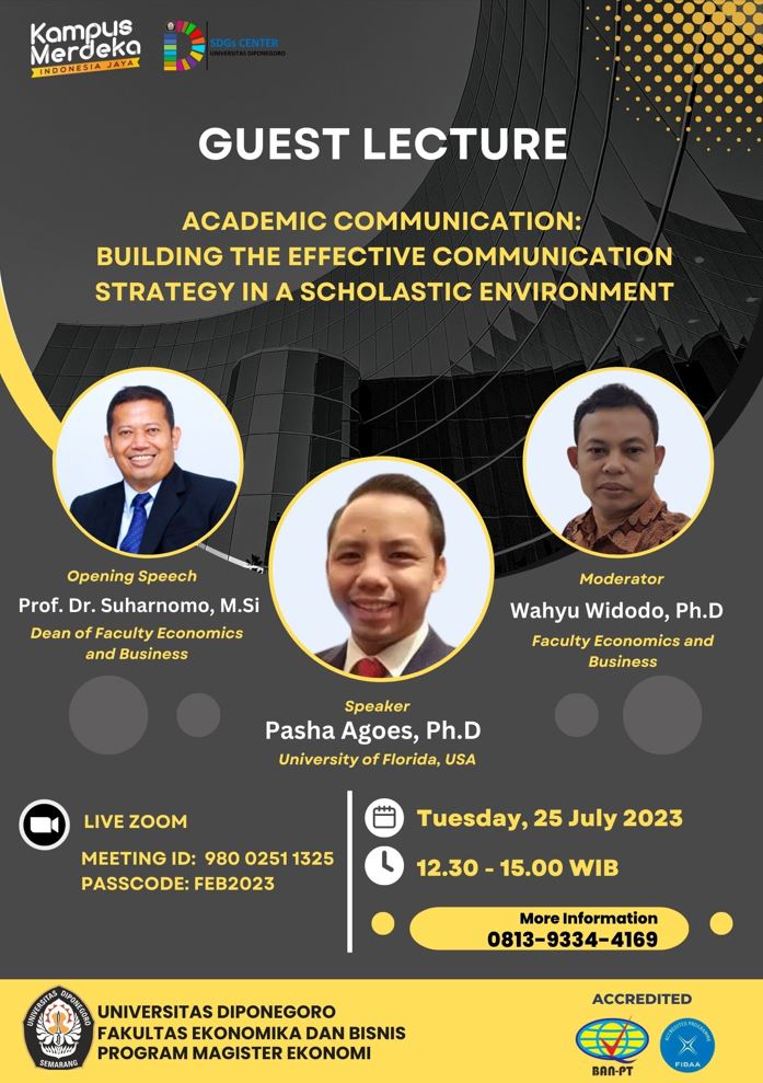 Guest Lecture ini diselenggarakan pada hari Selasa tanggal 25 Juli 2023, secara daring (online) dari pukul 13.00 – 15.00 WIB.Narasumber dalam Guest Lecture ini adalah Pasha Agoes Ph.D, saat menduduki jabatan sebagai Assistant Instructional Professor, Dial Center for Written and Oral Communication, University of Florida.