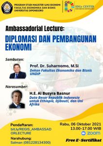 Master of Economics, Economics and Business Study Program at Diponegoro University held an International Guest Lecture entitled: “Transition to Low Carbon Economy”, by presenting competent