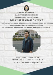 Master of Economics at Diponegoro University held a Scientific Discussion on Monday, June 28, 2021. The Scientific Discussion was delivered by Nur Rifai as a
